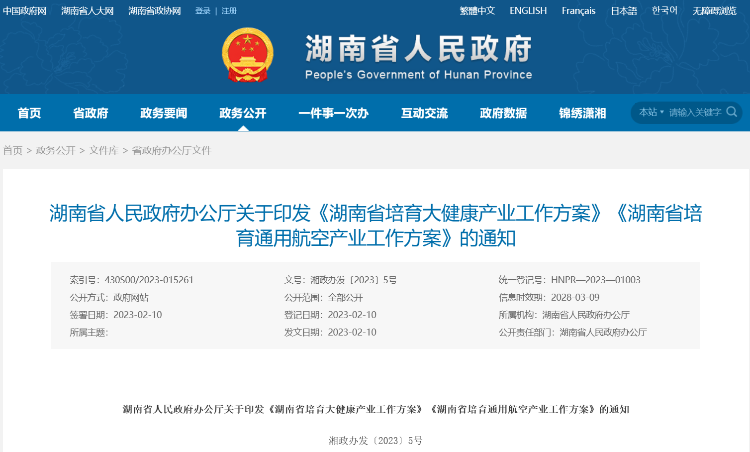 湖南省培育通用航空产业工作方案