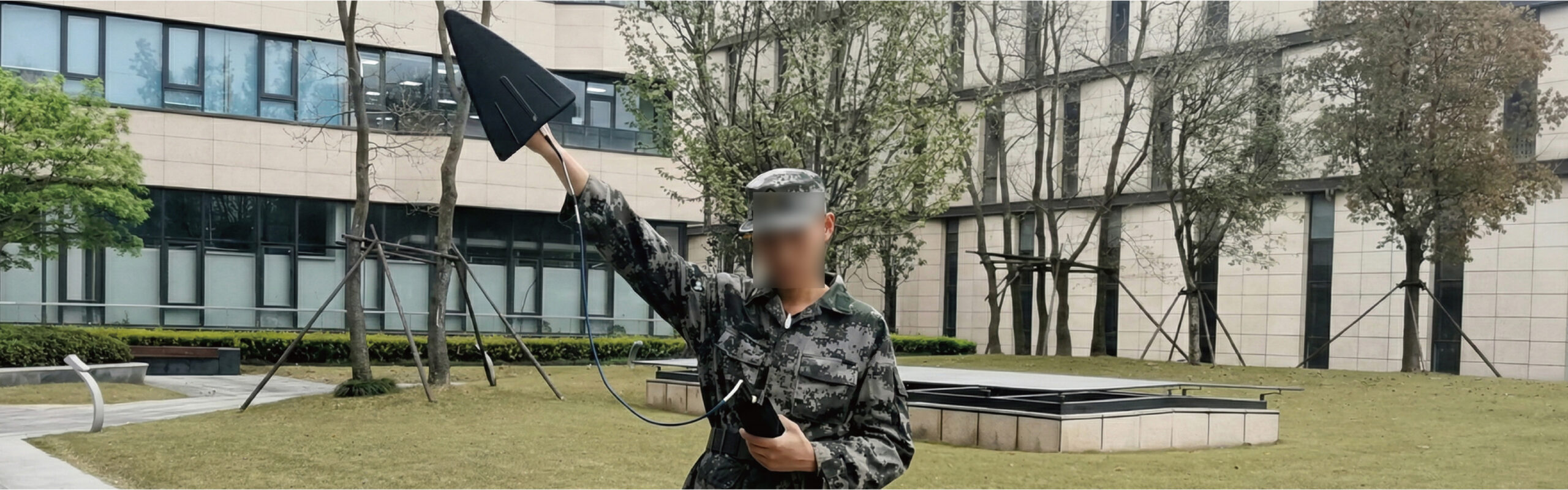 The device collects surrounding radio signals and sorts drone signals out via deep learning.When a drone is identified, it alerts people through sound and/or light alarms.