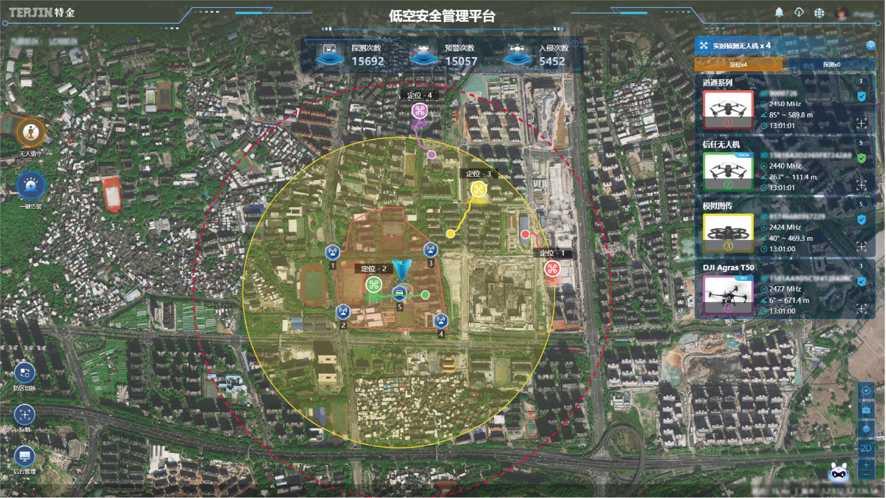 Comprehensive integration of various technologies, including passive spectrum detection, radar, optic-electric, radio jamming, navigation spoofing, etc. for detection, location, tracking, and effective disposal of unwanted drones.